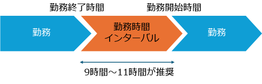 勤務間インターバル制度とは、退勤から翌日の出勤までのあいだに、一定時間以上の休息時間を確保する制度であり、2019年から企業への努力義務となっている。
